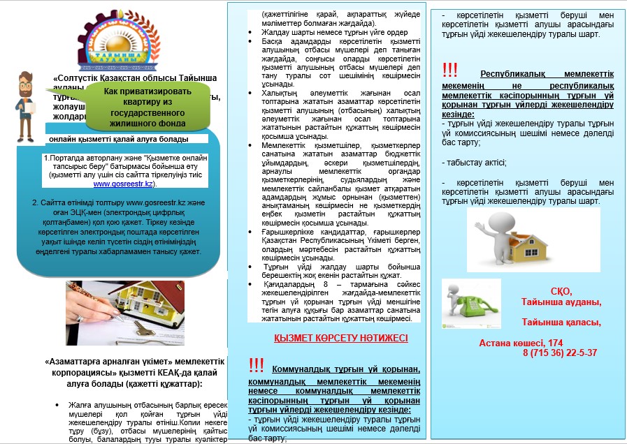 Мемлекеттік тұрғын үй қорынан тұрғын үйлерді жекешелендіру — 5;