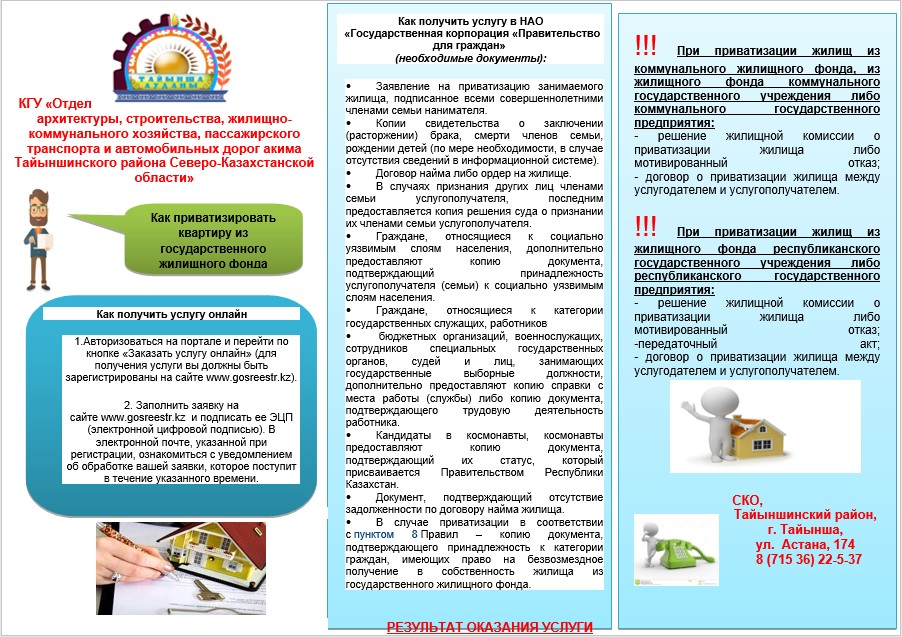 Информация об оказываемых государственных услугах КГУ «Отдел строительства, архитектуры и градостроительства акимата Тайыншинского района СКО